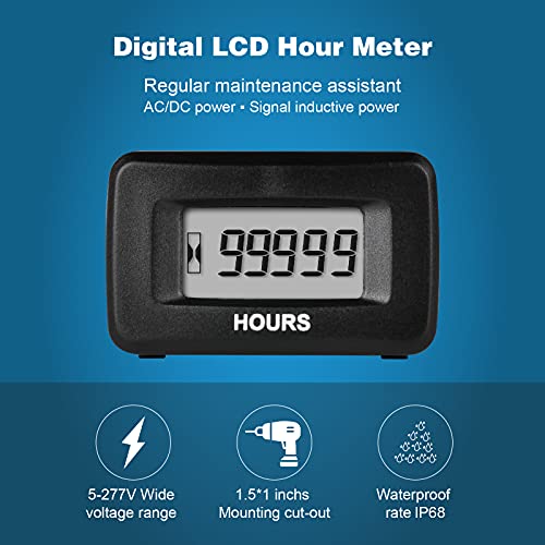 Runleader Digitale AC/DC Inductieve Urenteller, Volt.5V tot 277V, Onderhoudsintervallen Herinnering voor Grasmaaier…