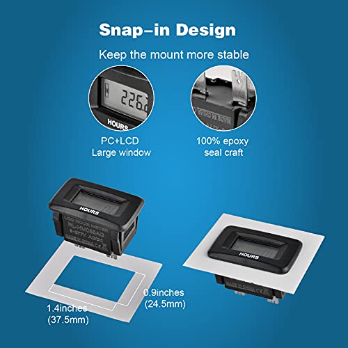 Specification: Runleader Digitale AC/DC Inductieve Urenteller, Volt.5V tot 277V, Onderhoudsintervallen Herinnering voor Grasmaaier…
